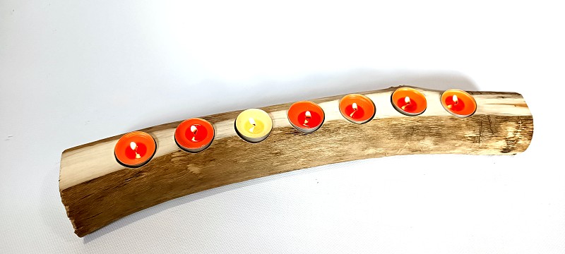 Svícen na sedm čajových svíček z velmi starého osikového dřeva.