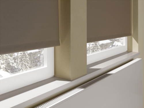 Tato látková roleta má látku potaženou hliníkovou termoizolační vrstvou, je energeticky úsporná. Přes látku není vidět, roleta je zcela zatemňující.