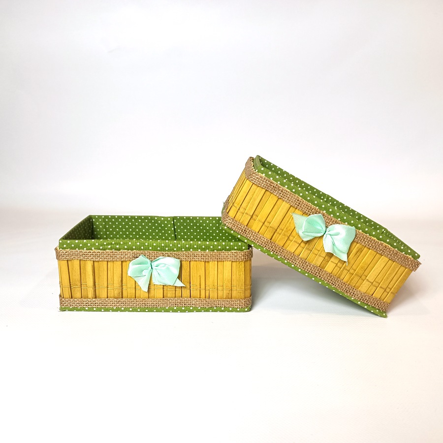 Sada dvou košíčků se zelenou látkou a bambusem