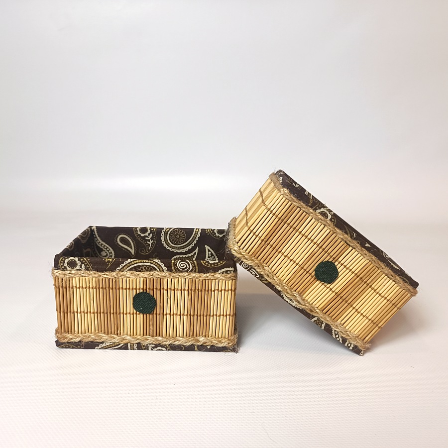 - Sada dvou košíčků z bambusu a dekorační látky